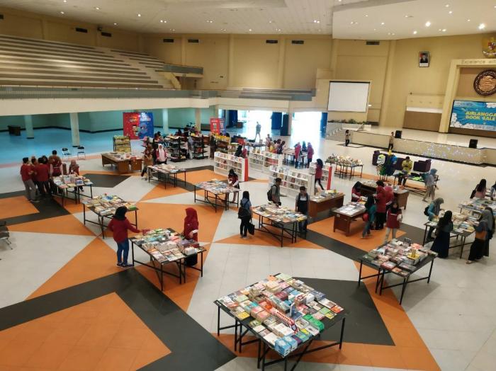 retorika.id - (14/11) Airlangga Book Sale 2018 merupakan acara bazar buku yang kembali hadir tahun ini. Acara yang juga merupakan serangkaian dari Dies Natalies ke-64 Unair ini berlokasi di gedung Airlangga Convention Center kampus C Universitas Airlangga. Acara ini dibuka pada hari Selasa kemarin (13/11) mulai pukul 10.00 WIB. Antusiasme terlihat ketika para pengunjung mulai ramai datang untuk membeli buku-buku yang dijual dengan diskon yang mencapai 60-80 persen.