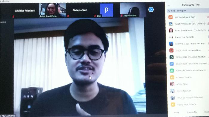 retorika.id- Seminar online yang bertajuk “Career Opportunities as Reporter” berlangsung melalui via Zoom pada hari Kamis, 14 Mei 2020. Seminar tersebut diselenggarakan oleh Pusat Pembinaan Karier, Kewirausahaan, dan Hubungan Alumni (PPKKHA) dengan menghadirkan seorang reporter Jawa Pos, Dimas Nur Aprianto. Lebih dari 200 peserta yang mendaftarkan diri dan bergabung di dalam seminar online ini. Kegiatan diawali dengan sambutan oleh Ratna Dewi Kumalasari selaku moderator dari PPKHA.