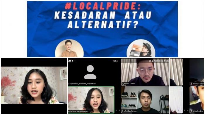 retorika.id- Telah dilangsungkan kegiatan webinar yang diselenggarakan oleh Kementerian Sosial dan Budaya, BEM FISIP Unair pada Sabtu (24/10/20). Webinar yang mengusung tema #LOCALPRIDE: Kesadaran atau Alternatif? mengundang dua orang pembicara, yakni Edwin Yani Widjaja (Owner Taylor Fine Goods) dan Norif Warisman (Youtuber/Influencer) dengan Vanessa Audy sebagai moderator. Kegiatan ini dimulai pada pukul 15.00 WIB yang diadakan melalui Zoom dan live YouTube.