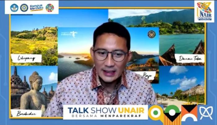 Kamis (18/11) Menteri Pariwisata dan Ekonomi Kreatif, Sandiaga Uno kembali menyapa Universitas Airlangga melalui Talkshow yang disiarkan langsung di akun Youtube Universitas Airlangga.