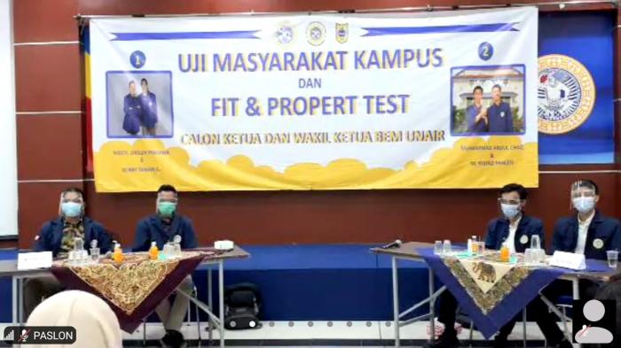 Telah berlangsung Debat Terbuka Uji Masyarakat Kampus dan Fit & Propert Test pada Kamis (22/10/2020). Acara ini diselenggarakan secara hybrid, yakni online dan offline. Terdapat dua poin yang ditanyakan oleh salah satu panelis, yakni Agung Tri Putra selaku Ketua BEM Universitas Airlangga 2019. Kedua pertanyaan itu berkaitan dengan Covid-19. Pertanyaan tersebut ditanggapi oleh masing-masing paslon dengan memaparkan program-program yang akan mereka lakukan ke depannya.