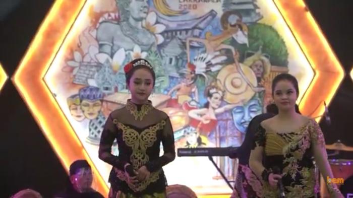 Setelah acara sambutan berlangsung, penampilan seni pertama adalah seni musik angklung yang merupakan kesenian asal Jawa Barat. Musik angklung diaransemen dengan alat musik lain seperti tong, simbal dan lainnya sehingga menghasilkan musik tongklek.